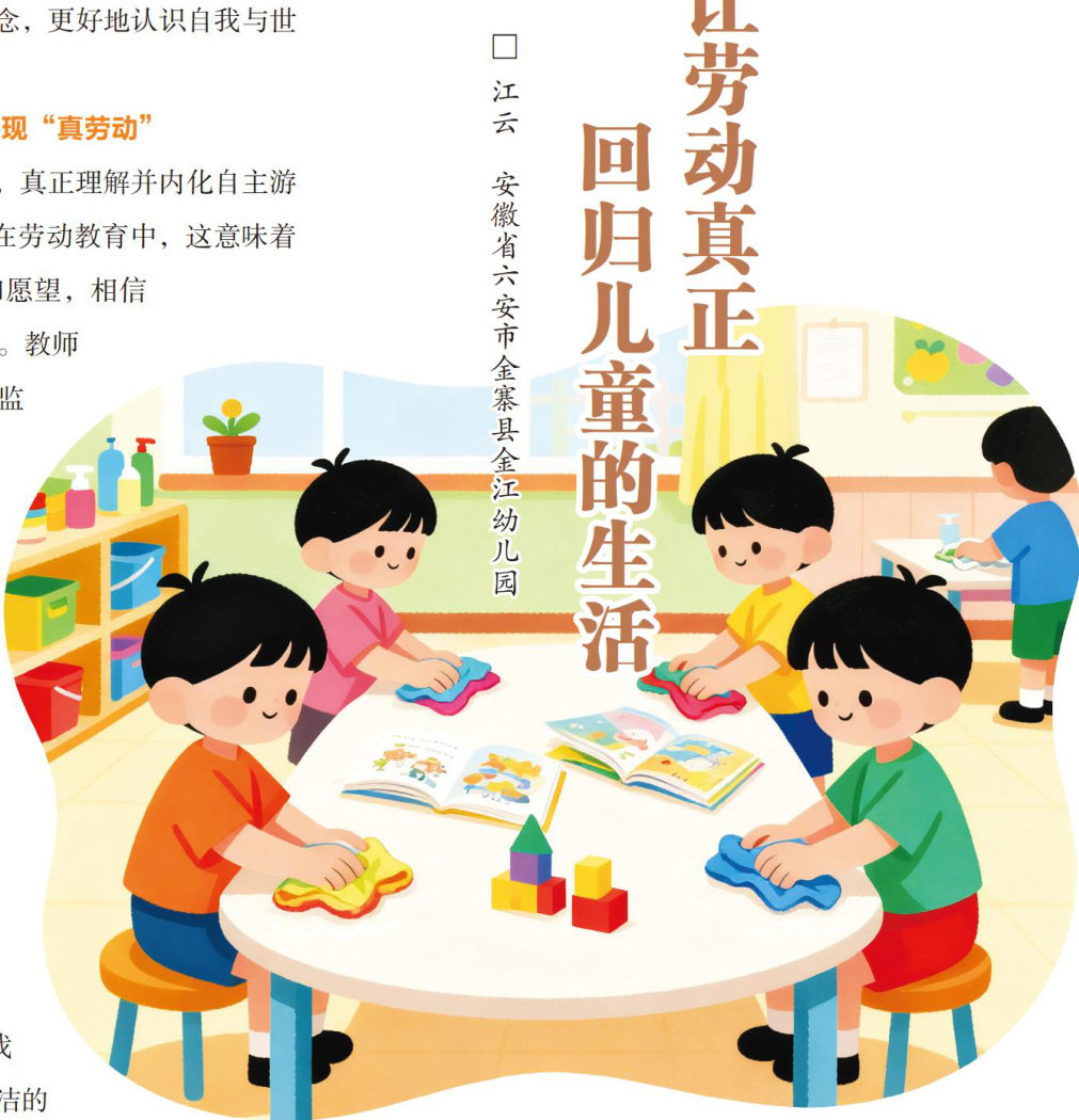 幼儿园阶段的劳动教育课程,对于孩子们的全面发展起着至关重要的作用。在这个关键时期培养的生活习惯和行为规范,能够助力幼儿身心健康发展,让他们在愉快和谐的成长氛围中,将劳动教育的核心理念与生活实际紧密融合。自主游戏所倡导的“真游戏”理念,强调充分尊重幼儿的自主性,允许他们在自由、开放的环境中自主探索,为劳动课程的生活化实施提供了极佳的实践路径。 在教学实践中,教师应遵循自主游戏的理念,推动幼儿园劳动