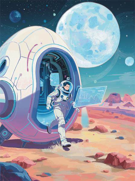 1 穿戴好防护服,深呼吸几口气,确认氧气供应正常,晓回启动蛋壳飞行器磁力固定系统,打开舱门,准备面对外面这个新星球静悄悄的“欢迎仪式”。 舱门自动关上了。固定在头盔上的微型摄像仪在出舱前已经进入工作状态,忠实地记录下这个孤独的地球人踏上星球表面全过程的一举一动。 “星球漫游第51号资料。仙女系星座,暂定名xh51。室外温度5℃,该外星大气由氮(58%)、氩(22%)、二氧化硫(15%)构