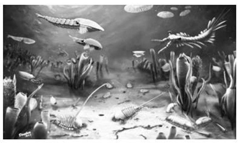 素养达标 1984年古生物学硕士侯先光在云南省澄江县帽天山发现了大量同时期的海洋古生物化石,这些化石再现了5.3亿年前地球上生命的壮丽景观,举世轰动。下图为澄江生物群复原图。据此完成1~2题。 1.澄江古生物化石群的发现说明当地发生过( ) A.海陆变迁 B.火山活动 C.洪涝灾害 D.海水养殖 2.澄江古生物化石群再现了5.3亿年前地球上生命的壮丽景观,主要原因是( ) A.人