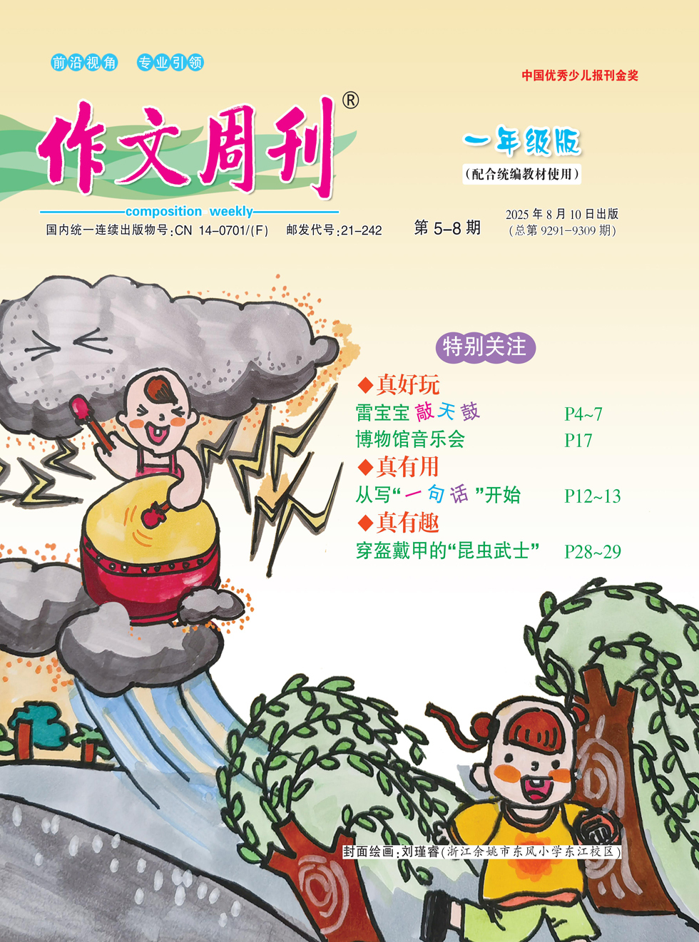 哎哟,太阳怎么躲起来了?乌云为啥快活得直翻跟头?小娃娃怎么“捂紧耳朵往家跑”?“轰隆隆……”雷宝宝的天鼓敲得震天响—— 雷宝宝敲天鼓 ◎夏辇生 轰隆隆,轰隆隆…… 雷宝宝敲响了天鼓。 哎呀,烦死了!烦死了!——太阳躲得远远的。 嘿嘿,真有趣!真有趣!——乌云快活得直翻跟头。 好,好,使劲儿敲!——大风亮开嗓门凑热闹。 轰隆隆,轰隆隆…… 小娃娃吓得捂紧耳朵往家跑。 雷宝宝急了,