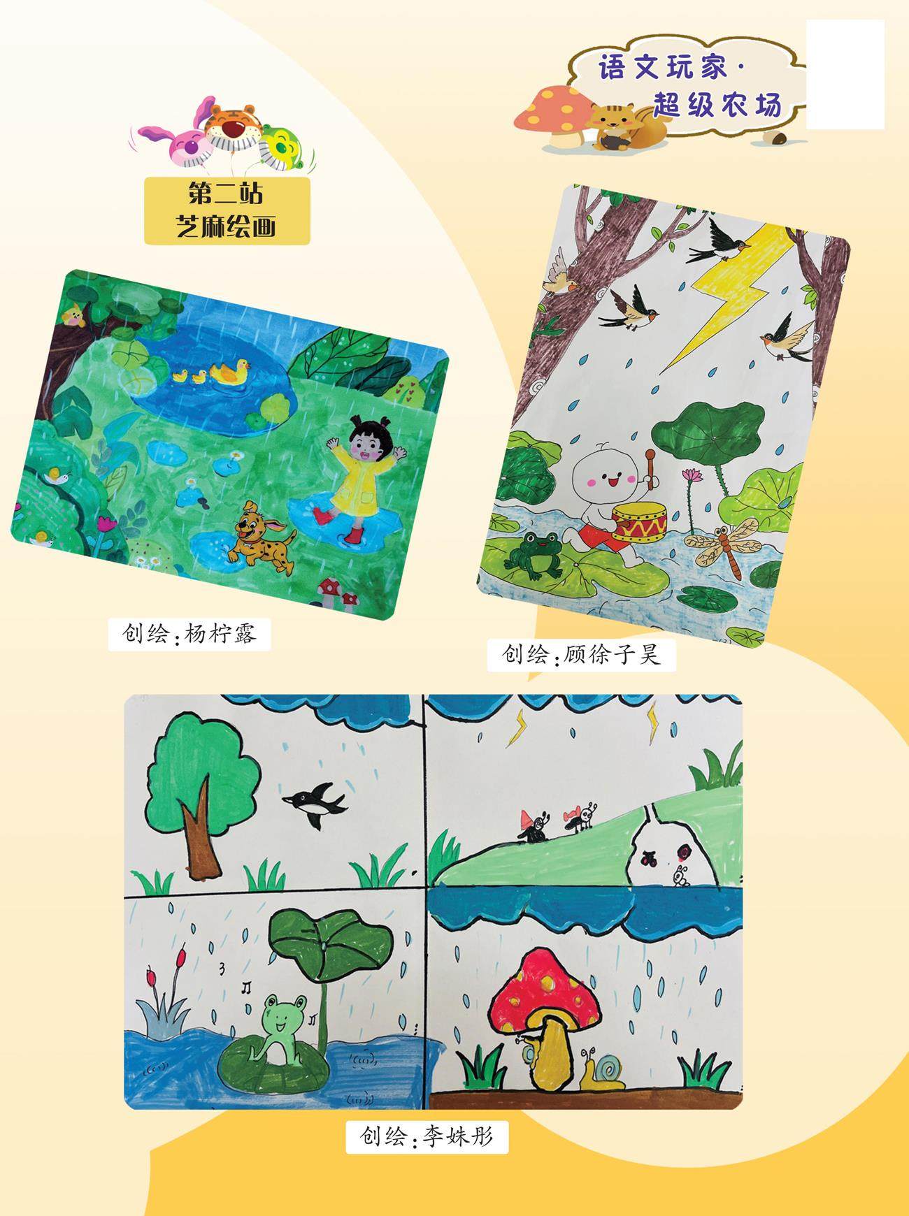 “写xiě话huà好hǎo难nán啊ɑ!我wǒ不bù知zhī道dào写xiě什shén么me。”跳tiào跳tiɑo蛙wā犯fàn愁chóu地de看kàn着zhe红hónɡ袋dài鼠shǔ。 “唉āi,我wǒ也yě不bú会huì。”红hónɡ袋dài鼠shǔ跟ɡēn着zhe皱zhòu起qǐ眉méi头tóu。 听tīnɡ见jiàn他tā们men的de对duì话huà,大dà熊xiónɡ老l