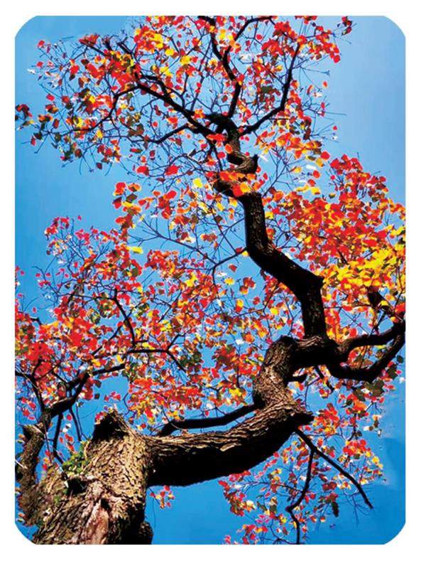 王wánɡ先xiān忧yōu:我wǒ们men来lái到dào月yuè牙yá堤dī,这zhè里li有yǒu一yì棵kē五wǔ彩cǎi斑bān斓lán的de乌wū桕jiù树shù。绚xuàn烂làn的de叶yè子zi高ɡāo高ɡāo挂ɡuà在zài枝zhī头tóu,有yǒu些xiē叶yè子zi已yǐ经jīnɡ开kāi始shǐ由yóu绿lǜ色sè转zhuǎn变biàn成chénɡ黄huánɡ色sè,像