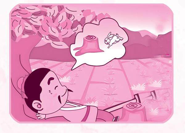 小xiǎo兔tù子zi,跑pǎo得de快kuài, 撞zhuànɡ树shù死sǐ掉diào真zhēn意yì外wài。 农nónɡ夫fū捡jiǎn起qǐ乐lè开kāi怀huái, 觉jué得de种zhònɡ田tián划huá不bù来lái。 一yì天tiān天tiān,树shù边biān待dāi, 等děnɡ捡jiǎn兔tù子zi想xiǎnɡ发fā财cái。 结jié果ɡuǒ不bù说sh