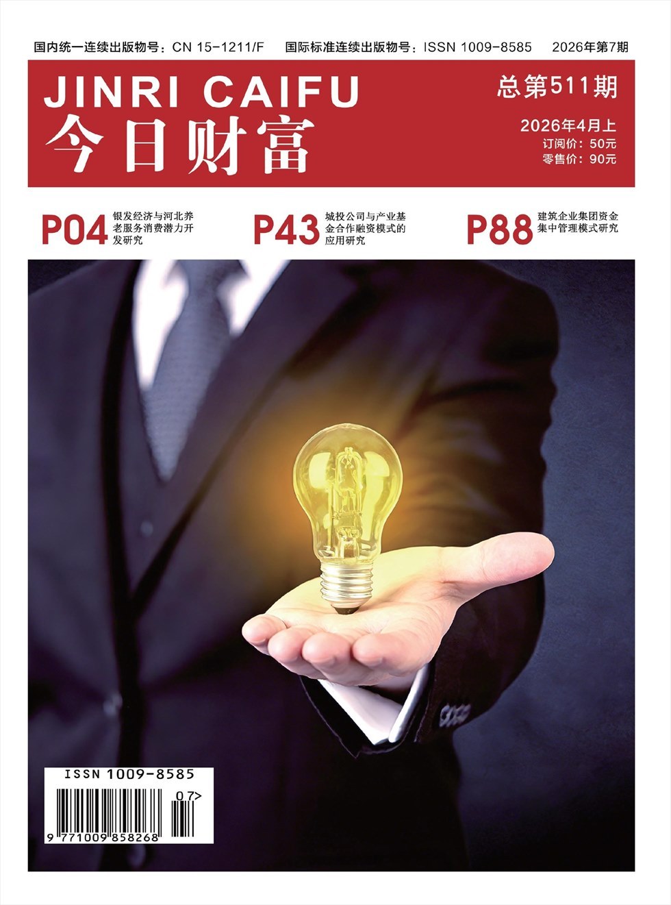 《今日财富》杂志是经国家新闻出版总署批准,内蒙古新华报业中心主管、主办,国内外公开发行的综合性经济类刊物。本刊坚持学术性、时代性、创新性和超前性特点,在报道经济、新闻、学术观点的同时辟有专门的学术栏目,致力于为国家机关、学术研究机构、企事业单位、科教人员等发表科研成果及学术研究提供专业平台。