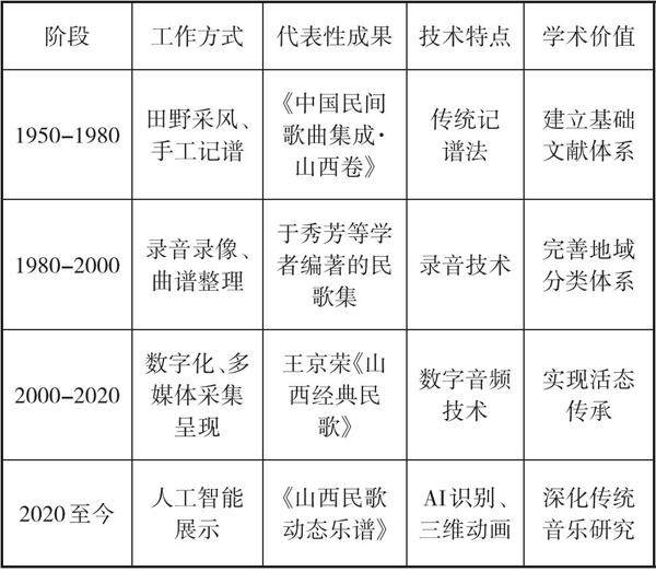 作为华夏文化渊源之一,山西文化历史悠久。合河遗址、丁村遗址即有人类遗迹,仰韶文化也留下了大量文明踪迹。作为人类文化的遗存形式之一,山西民间歌曲不仅数量众多且形式丰富,因山河地势不同的地理文化之故,山西民歌又有晋西北、晋中、晋西南等地域民歌的迥异风格,是鲜明地域文化特点之显现,是各地区传统文化的具象特色之反映,也是新的发展中特别选用的音乐题材之重。 在山西民歌的挖掘与传承上,近代以来的每次民歌搜集