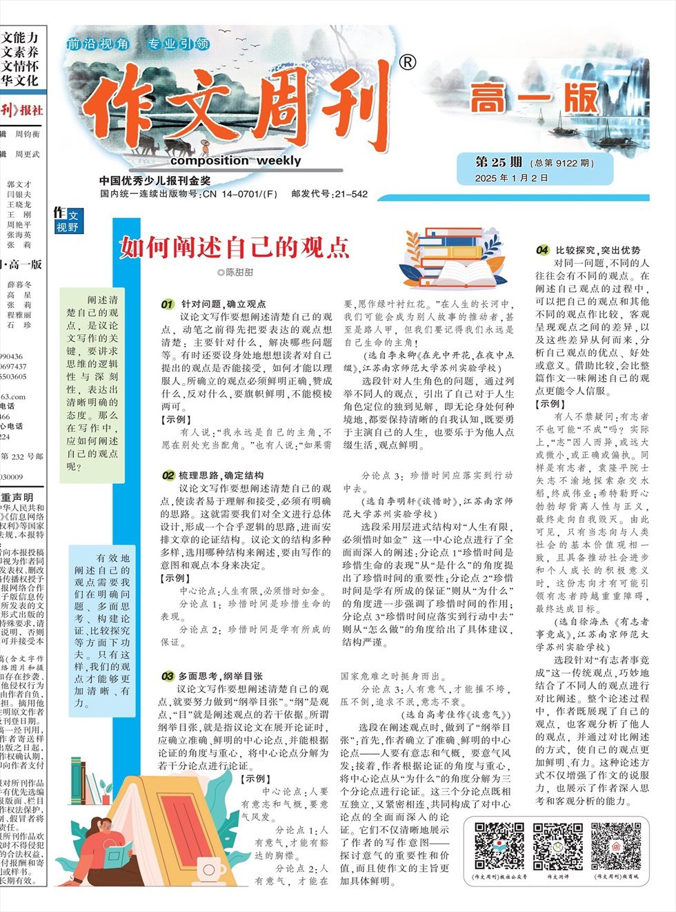 阐述清楚自己的观点,是议论文写作的关键,要讲求思维的逻辑性与深刻性,表达出清晰明确的态度。那么在写作中,应如何阐述自己的观点呢? 针对问题,确立观点 议论文写作要想阐述清楚自己的观点,动笔之前得先把要表达的观点想清楚:主要针对什么,解决哪些问题等。有时还要设身处地想想读者对自己提出的观点是否能接受,如何才能以理服人。所确立的观点必须鲜明正确,赞成什么,反对什么,要旗帜鲜明,不能模棱两可。 【