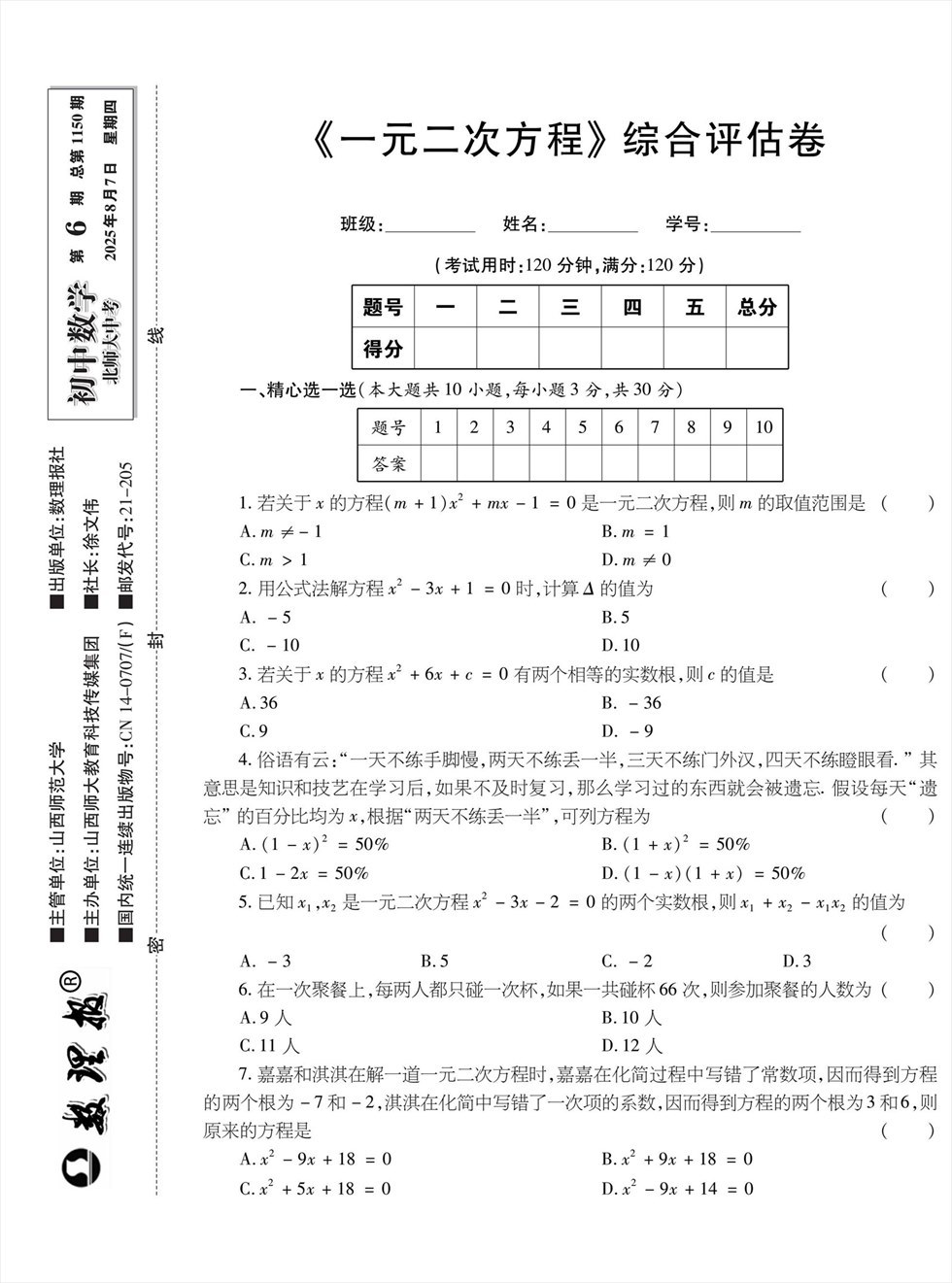 《数理报》是由山西省教育厅主管,山西师范大学主办,面向全国发行的中小学生理科教学辅导类报纸