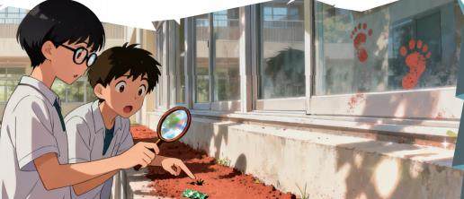 奇怪的发现 早上第一节课是数学课,李老师在黑板上写着乘法表。我正对着窗外发呆,突然发现玻璃窗上有个模糊的印子。凑近一看,我的天!那是个沾着红泥土的小脚印。 “老师!”我忍不住举手,“窗户上有脚印!”全班同学“哗啦”一下都涌到窗边。 李老师皱着眉擦了擦眼镜:“别胡说,可能是哪个调皮鬼的恶作剧吧。”她拿出抹布想擦掉脚印,可红泥土干在玻璃上,怎么擦都留着淡淡的印子。 放学的时候,我特意绕到教室外