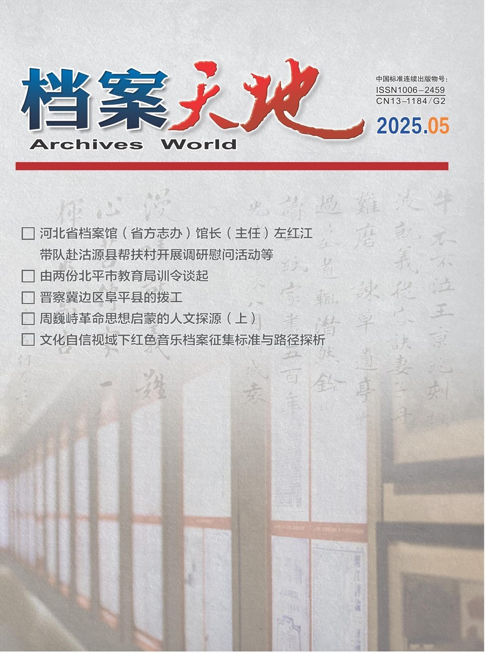 档案天地由河北省档案局主办,是河北省唯一省级档案专业刊物。主要栏目:大家开宗、决策者说、我的档案我公开、档案与我与我家、历史的名词、珍档巡礼、四海钩沉、兰台秘光、档案人语、人生驿站等。