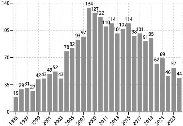 【摘要】本研究运用文献计量方法,基于中国知网(CNKI)的北大核心与CSSCI期刊文献,梳理了国内“西方马克思主义”研究介于1995—2024年的中文期刊学术成果。研究发现,国内“西方马克思主义”研究的发文量呈现阶段性波动,2004—2008年为快速增长期,随后有逐渐下降趋势。期刊《马克思主义与现实》和《马克思主义研究》为主流传播媒介。研究热点主要集中在西方马克思主义思潮及其批判、马克思主义意识形态研究、方法论研究及文化研究四个方向,反映了该领域从哲学思辨到实证分析再到跨学科融合的理论演进路径。