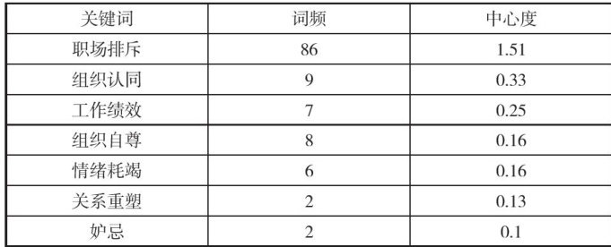 摘要:本文采用文献计量和内容分析法,旨在梳理国内职场排斥研究的关注焦点、核心内容、未来研究热点和发展趋势,通过内容分析探究职场排斥的前因和结果变量。具体而言,利用CiteSpace软件,对中国知网核心数据库中的102篇相关文献进行知识图谱构建与分析。通过进行关键词词频和中心性、关键词聚类、关键词突现和时间线图谱等维度的考察,系统梳理职场排斥领域的研究现状,以期得出有价值的结论与启示。