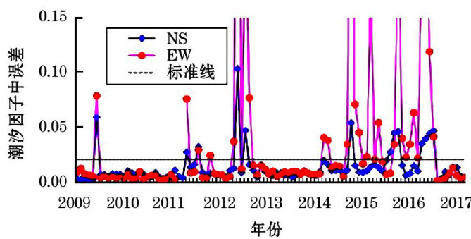 摘要:利用小波分析、相关性分析方法定量研究气象因素对库尔勒霍拉山宽频带倾斜的影响特征及机制,通过回归分析剔除气温对NS分量的影响,使用 R 值评分方法进行映震效能检验,并总结其异常特征。结果表明: ① 气压是库尔勒霍拉山宽频带倾斜短周期变化的主要影响因素,两分量共同优势周期为 26~27min.212~213min.214~215min;② 气温、降雨是年变化的主要影响因素,气温与 NS分量呈显著线性负相关,当NS分量(去趋势)相位滞后气温17d时,二者相关系数最高达-0.751;③ 每年4—9月受降雨影响两分量呈“M"型年变,该时段降雨抑制了气温对宽频带倾斜的影响;