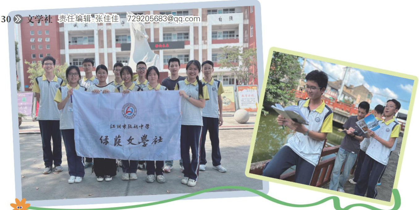 在江阴陆桥,一座旧称“绿葭桥"的古桥枕着流水,静卧水乡深处。40余年前,这生于水畔、柔韧而坚、清幽卓立的意象,被陆桥中学承续为文学社名一“绿葭”。从此,一缕浸润着水汽与墨香的人文根系,便在校园里扎根舒展,悄然织就那连通古今的精神根脉。绿葭文学社以青绿书香为底色,让文学扎根乡土,映照生命,助力社员们如绿葭般舒展生长。 “绿葭”二字,既承载着对脚下土地上历史印记的温情回望,也寄托着学校“向好