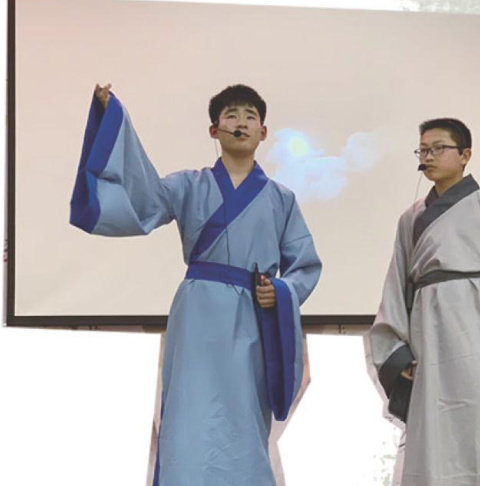 表演者 苏轼(陆凯焱) 陈慥(费晔斌) 张怀民(张弛) 第二幕 泛舟赤壁 人物苏轼,陈慥,张怀民地点赤壁 “乌台诗案”一事,太皇太后曹氏、章惇等人出面力挽,神宗遂下令对苏轼从轻发落。苏轼终免一死,被贬黄州,充团练副使。放波浪涛声音乐,三人上场。 苏轼 (遥指前方)此景,旷古难有企及也! 陈慥当年赤壁一战,火烧曹营,英雄在世,豪情万丈。张怀民只叹如今,旧事不在,只有我们三个闲人在此徒增愁绪