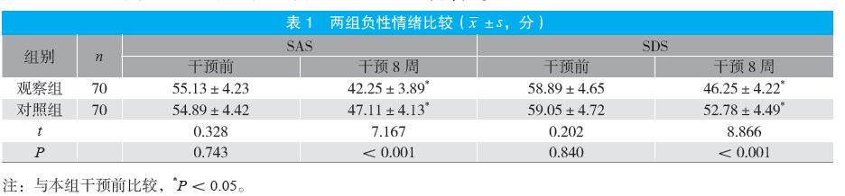 摘要:目的 探讨心理干预对妊娠糖尿病(GDM)患者心理状态、血糖控制及妊娠结局的影响。方法 选取2024年1月至2025年2月医院收治的140例GDM患者为研究对象,按照随机数字表法分为对照组与观察组各70例。对照组采用GDM标准管理干预,观察组在对照组基础上采用心理干预。比较两组负性情绪、血糖指标及不良妊娠结局。结果 干预前,两组焦虑自评量表(SAS)、抑郁自评量表(SDS)评分比较,差异无统计