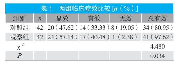摘要:目的 探讨清热化湿、理气和胃方联合温胃贴治疗浅表性胃炎伴胃脘痛的临床疗效。方法 选取2023年6月至2024年12月医院收治的80例浅表性胃炎伴胃脘痛患者为研究对象,按随机数字表法分为对照组与观察组各40例。对照组采用常规西医治疗,观察组在对照组基础上加用清热化湿、理气和胃方联合温胃贴治疗,疗程均为4周,比较两组临床疗效、胃黏膜改善程度及不良反应发生情况。结果 观察组临床总有效率高于对照组(