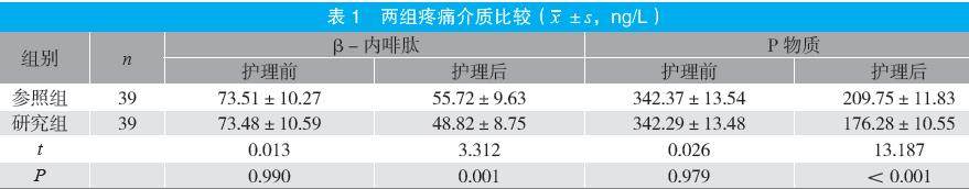摘要:目的 探讨心理干预联合睡眠护理对甲状腺癌术后患者心理弹性及睡眠质量的改善效果。方法 选取2024年1~12月于医院行甲状腺癌手术的78例患者为研究对象,按随机数字表法分为参照组和研究组各39例。参照组术后采用常规护理,研究组在参照组基础上采用心理干预联合睡眠护理,比较两组术后疼痛介质(β-内啡肽、P物质)水平、心理弹性、睡眠质量及术后并发症发生情况。结果 护理后,研究组β-内啡肽、P物质水平