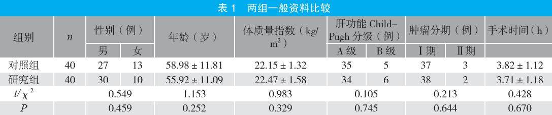 摘要:目的 探讨ERAS理念下手术室护理对腹腔镜肝切除术患者围手术期护理的影响。方法 选取2023年8月至2025年2月医院收治的80例肝癌患者为研究对象,按照随机数字表法分为对照组与研究组各40例。对照组给予常规手术室护理,研究组给予ERAS理念下手术室护理,比较两组康复指标、疼痛程度[视觉模拟评分法(VAS)评分]、依从性、满意度及并发症发生情况。结果 研究组下床活动、引流及住院时间均短于对照