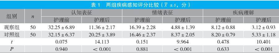 摘要:目的 探讨疾病感知模式护理对慢性肾衰竭血液透析患者简易疾病感知问卷(BIPQ)评分与自护能力的影响。方法 选取2024年1~12月医院收治的100例慢性肾衰竭血液透析患者为研究对象,按随机数字表法分为对照组和观察组各40例。对照组行常规护理,观察组在对照组基础上增加疾病感知模式护理,比较两组护理满意度、BIPQ评分及自我护理能力量表(ESCA)评分。结果 观察组护理总满意度高于对照组;护理后