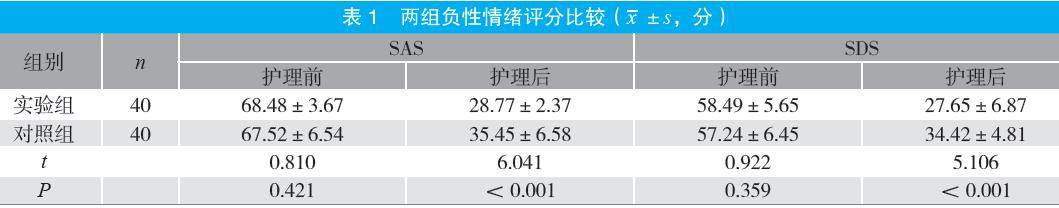 摘要:目的 探讨合理情绪行为护理联合精细化护理在烧伤瘢痕患者护理中的应用效果。方法 选取2022年2月至2025年2月医院收治的80例烧伤瘢痕患者为研究对象,按随机数字表法分为实验组与对照组各40例。对照组接受常规护理,实验组接受合理情绪行为护理联合精细化护理,比较两组负性情绪[焦虑自评量表(SAS)评分、抑郁自评量表(SDS)评分]、自我效能[自我效能感量表(GSES)评分]、应对方式[特