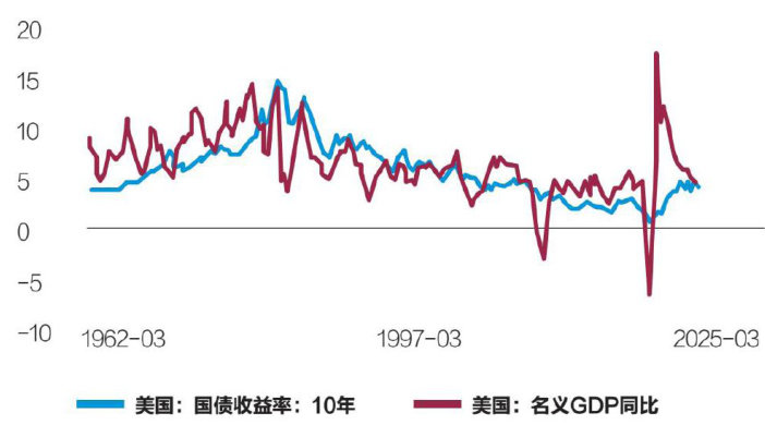 本文认为,从长周期看,美债收益率与美国经济增速走势紧密相关。2026年美国经济增长放缓及温和通胀可能主导上半年利率下行,10年期国债收益率低点或触及 3.5% ;但财政扩张与潜在的再通胀限制长债收益率下行空间,全年美国10年期国债收益率或呈V型震荡,运行于 3.5% ~4.2%区间。 长周期看,美债收益率与美国经济增速走势紧密相关 从长周期来看,美国10年期国债收益率总体上与名义GDP增速走势