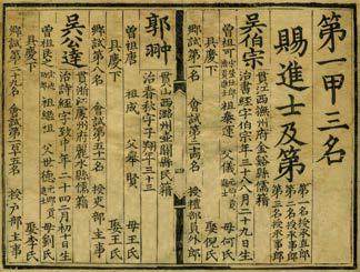 科举制度延续了一千多年,但与之相关的存世文献却为数不多。其中,两宋、元代的科举文献存世稀少,清代也不丰富,唯独明代有400余种科举文献保存至今。这在很大程度上得益于明代著名藏书家、天一阁创始人范钦的毕生搜求,令后人得以窥见科举制度的最初面貌和运作实况。 现藏于天一阁的《洪武四年进士登科录》,是明代科举文献中最具代表性的一种。洪武四年,朱元璋为选拔人才,举行了明朝开国后的首次科举考试,诸多考试