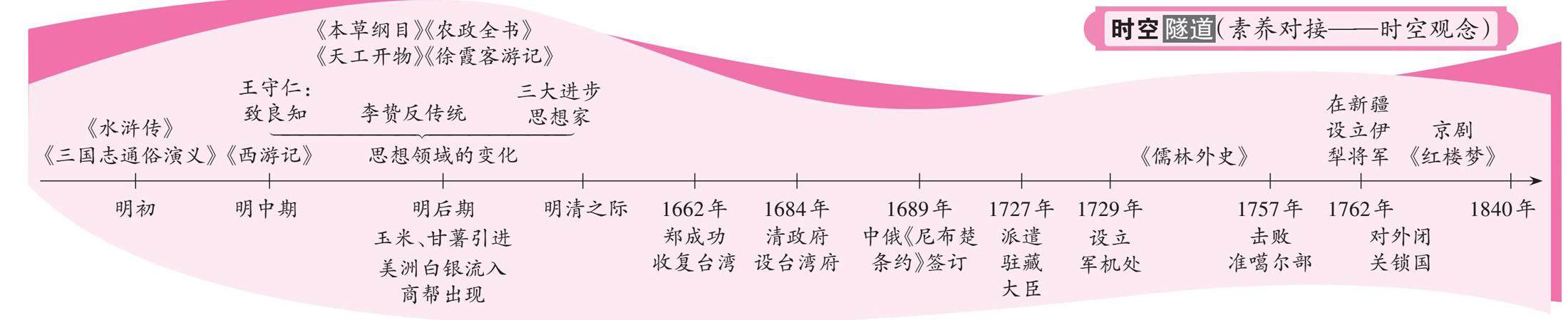 ◀ 素养夺标 ▶ 1. 通过明清时期高产农作物输入中国和西学东渐,从世界文明的角度认识不同文明之间的交流互鉴和共同发展。 2. 通过明清时期经济的发展与停滞,认识到我国已经处于“近代的前夜”,但又面临转型迟缓困难的窘境。 3. 通过分析明清之际儒家思想的特点及产生原因,认识君主专制的强化和资本主义萌芽的时代特征,进而理解一定时期的思想文化是一定时期经济、政治的反映。 ◀ 本课必备 ▶ 一