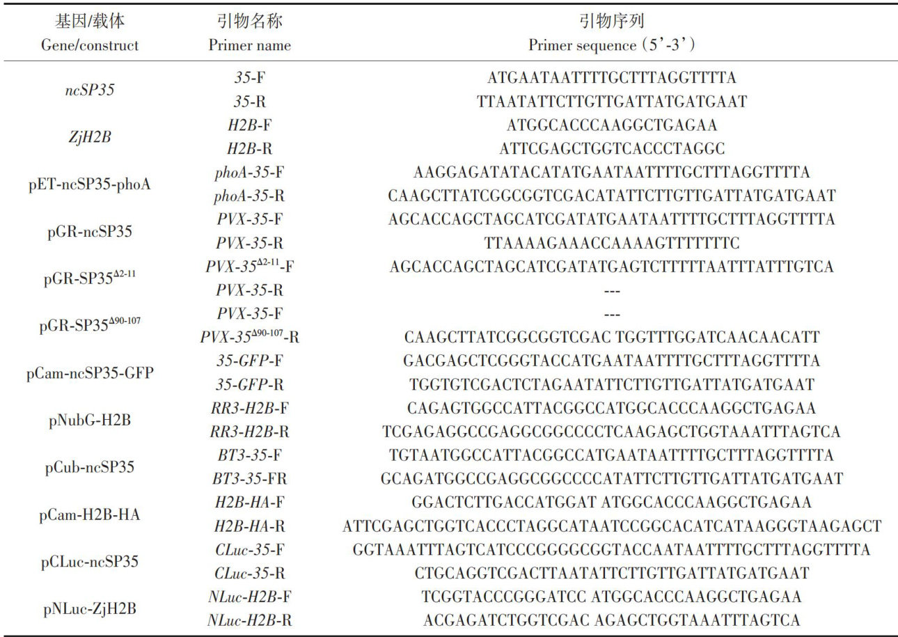 摘要:枣疯病由枣植原体(Candidatus Phytoplasma ziziphi)引起,是当前最具毁灭性的枣树病害。通过生物信息学分析结合大肠杆菌碱性磷酸酯酶报告系统,从枣植原体中鉴定了一个新的非典型分泌蛋白ncSP35;利用马铃薯X病毒载体在本氏烟中瞬时表达 ncSP35 ,证明其可抑制Bax激发的超敏反应(hypersensitiveresponse,HR)及 H2O2 积累,并能干扰植物生长发育;缺失和定点突变分析表明, ncSP35 中间区域(第37\~71位氨基酸残基)及极性氨基酸簇HKKENK是其抑制HR的重要功能区,而C-末端18个氨基酸残基为干扰植株生长发育的必需元件。蛋白亚细胞定位分析显示,ncSP35在细胞质中产生大量凝聚体,并干扰组蛋白H2B的核定位,导致H2B在胞质中形成凝聚体。酵母双杂交、免疫共沉淀和荧光素酶互补试验证实, ncSP35 与枣ZjH2B蛋白存在相互作用。研究结果为揭示枣疯病致病机理提供了新的分子视角。